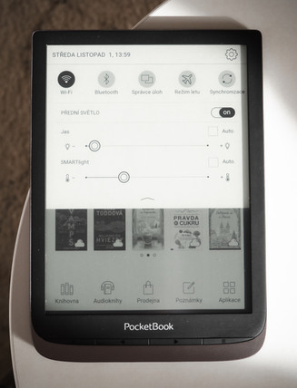 Většina moderních čteček má funkci podsvícení. Což je mnohem větší pomocník, než se zdá. Když zrovna nemáte dost světla na pohodlné čtení, zapnete si podsvícení, kterému lze upravit i teplotu. Takže když si chci číst před spaním, ale Tom už chce spát, nemusím ho budit lampičkou. Nebo když máte dlouhý přejezd autem/autobusem přes noc a nejde vám spát, čtečka vás zabaví. (A taky nemusíte lidi v letadle otravovat tím, že si rozsvítíte lampičku nad vámi. :D)